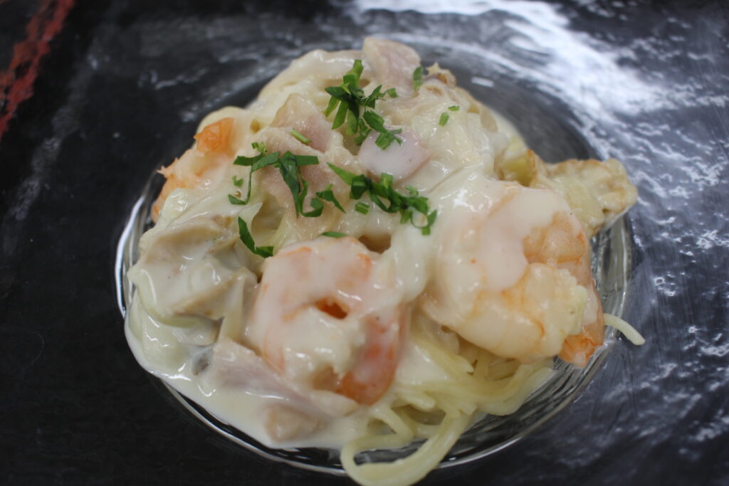 こちらは、クリームパスタです。主任の手作りです。とっても美味しく出来ました。