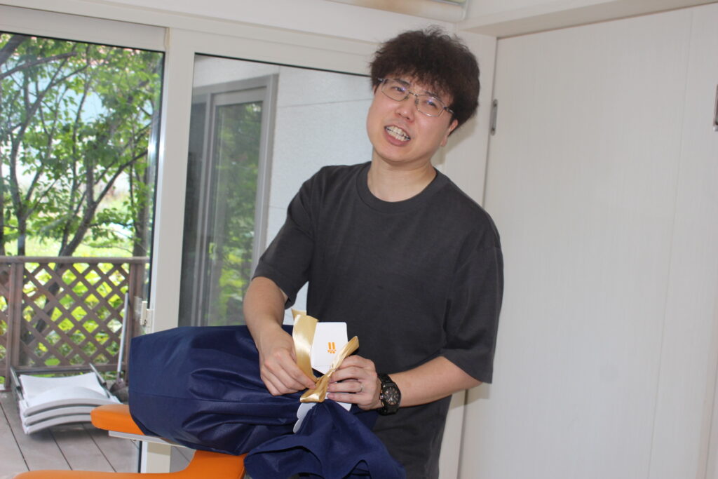 そして、施設長と、くるみ職員で出し合って買ったプレゼントの贈呈です。
