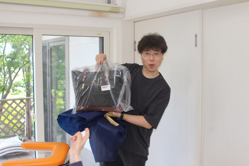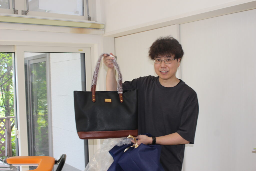 これからも、お仕事いっぱい頑張ってくださいと気持ちを込めてバックのプレゼントです。わぁ~!!!