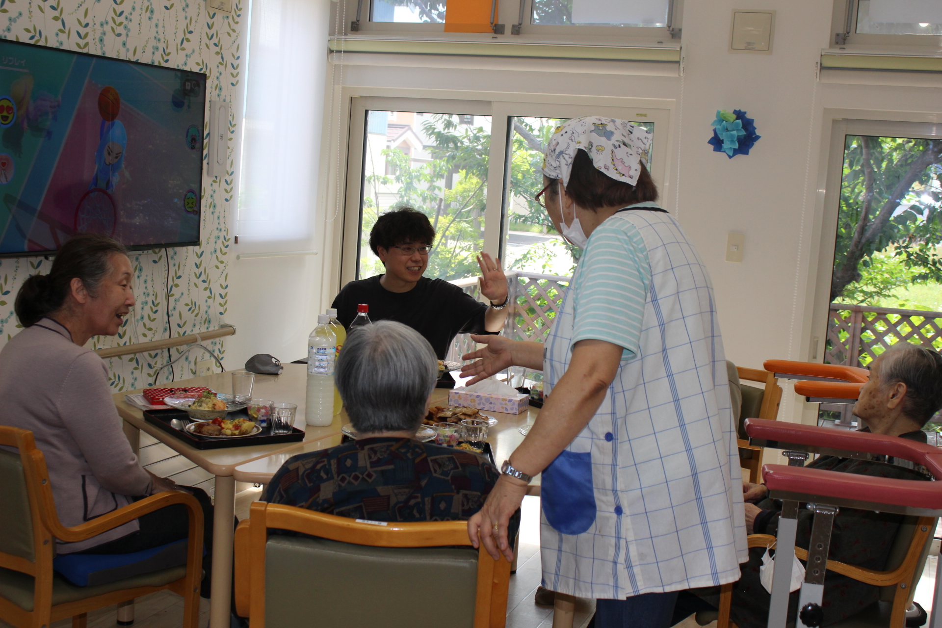 綺麗なランチに大喜びの皆さんでした。この日のレクは、旅立つ職員の得意な歌の会でした。懐かしい歌を皆さんで面白おかしく楽しみましたよ。歌いだしのタイミングが合わなくてカエルの合唱の様になったり、耳が遠く一人でどんどん先に歌い始めてしまった方もいたり大騒ぎでした。また、藤野の杜に遊びに来てねと、お約束をしお別れ会が無事に終わりました。面倒見の良い主任も、時々涙腺が緩んでいたような、、、(笑)素敵な会となりほっこりした日でした。澄川の施設に行っても頑張ってください。暖かく職員一同見守っていますよ!!!