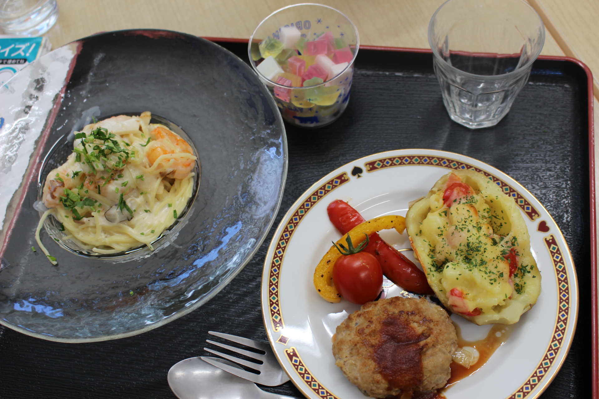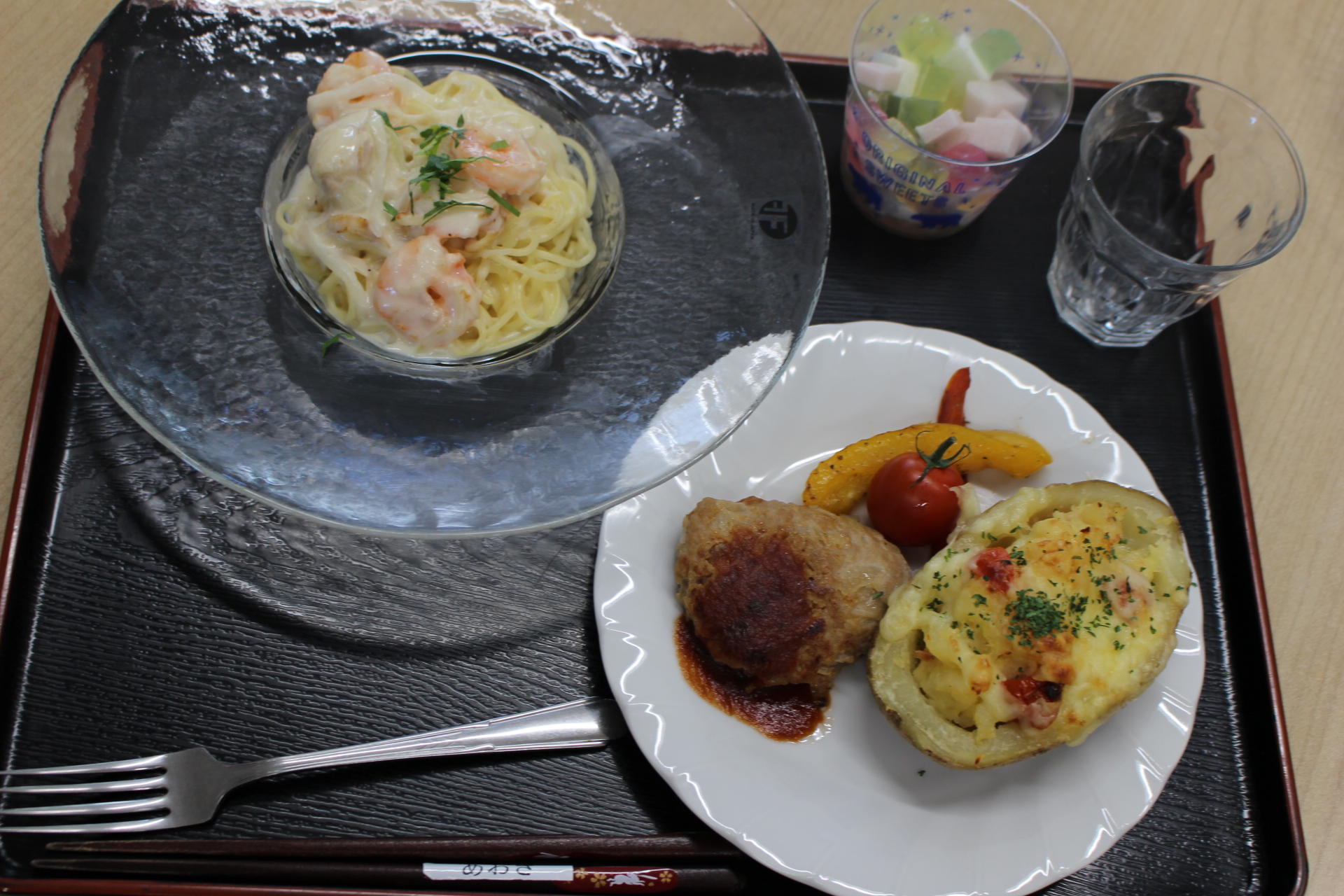 こちらは、クリームパスタです。主任の手作りです。とっても美味しく出来ました。