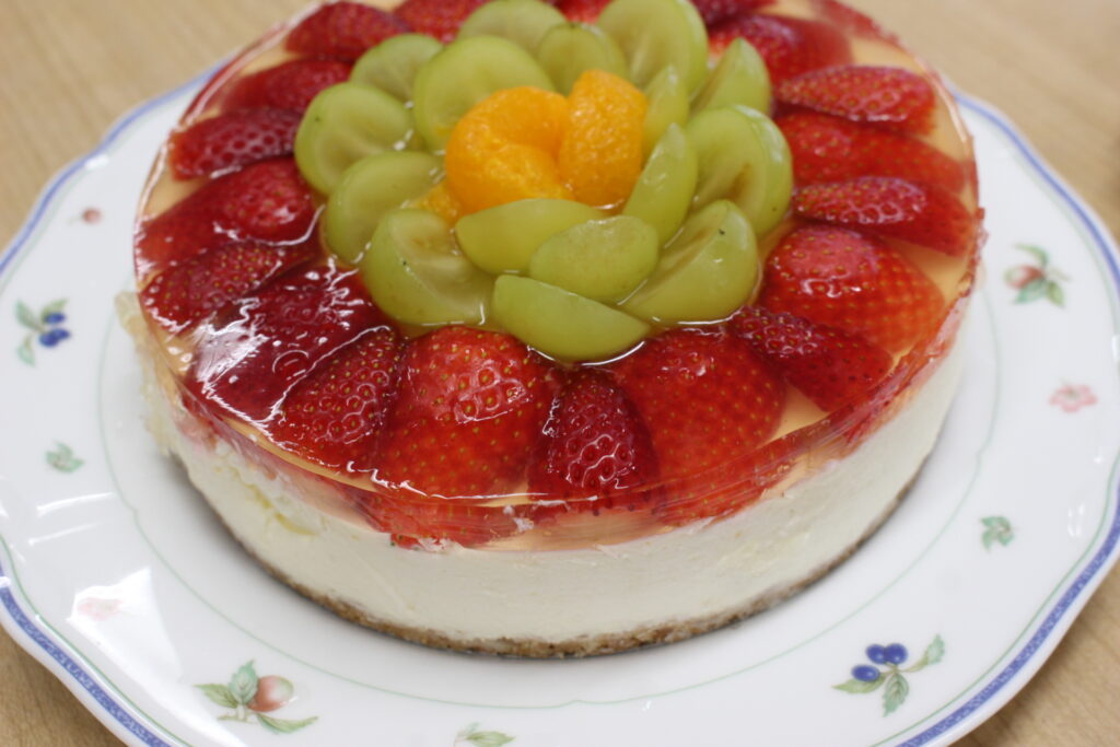 こっちは、イチゴと、シャインマスカットをふんだんに使用したチーズタルトです。形が、崩れず完璧に仕上がっています。これはくるみの皆さんに食べて頂きました♡シャインマスカットに大喜びでした。