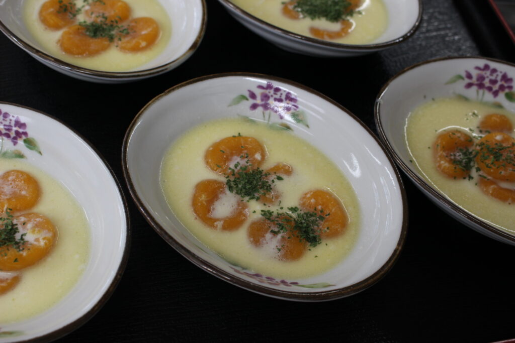 こちらは、カボチャで作ったニョッキです。これは、とても時間と手間がかかるそうです。主任に、皆で南区でお洒落なお店開けるよ??とその腕前で賑わっていました。
