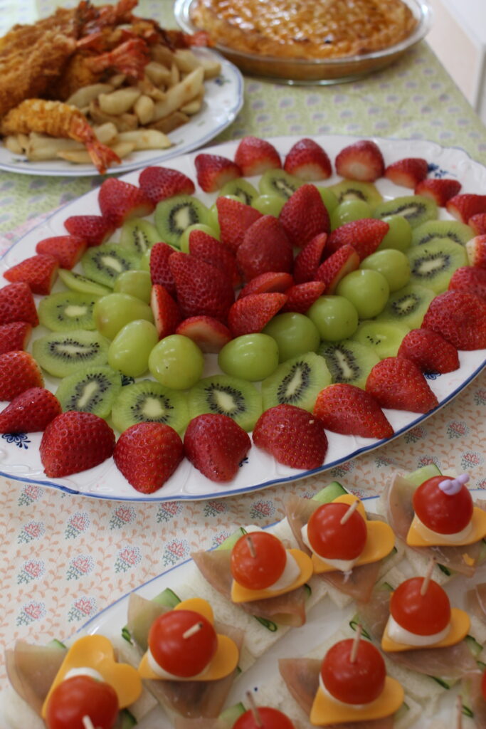 果物いっぱいです。一瞬ケーキにも見えます。皆さんには、カットしたフルーツが食べやすいようでした。
