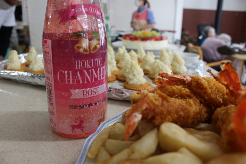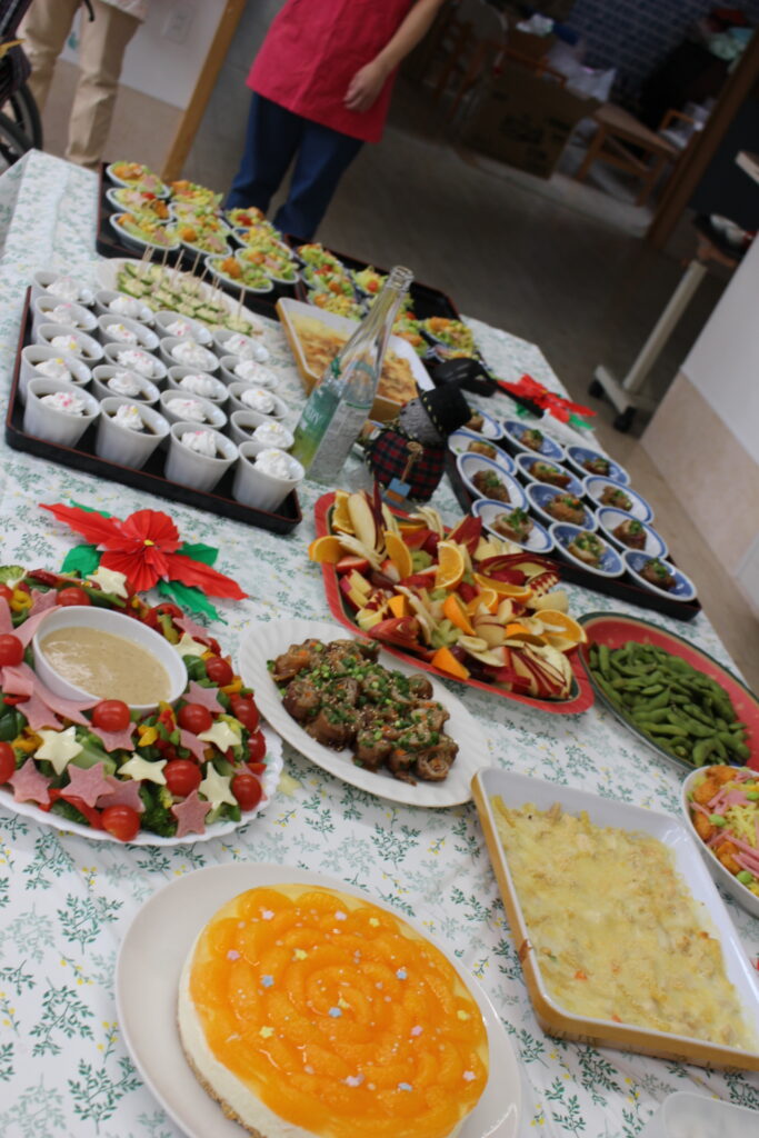 今年も待ちに待ったクリスマス会がやってきました。ケーキ作りの大得意の主任が今回も手作りケーキを作ってくれました。今回も上手に可愛く仕上がっています。キラキラしていました。