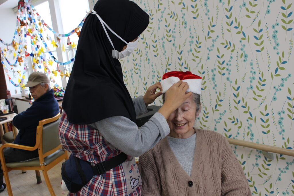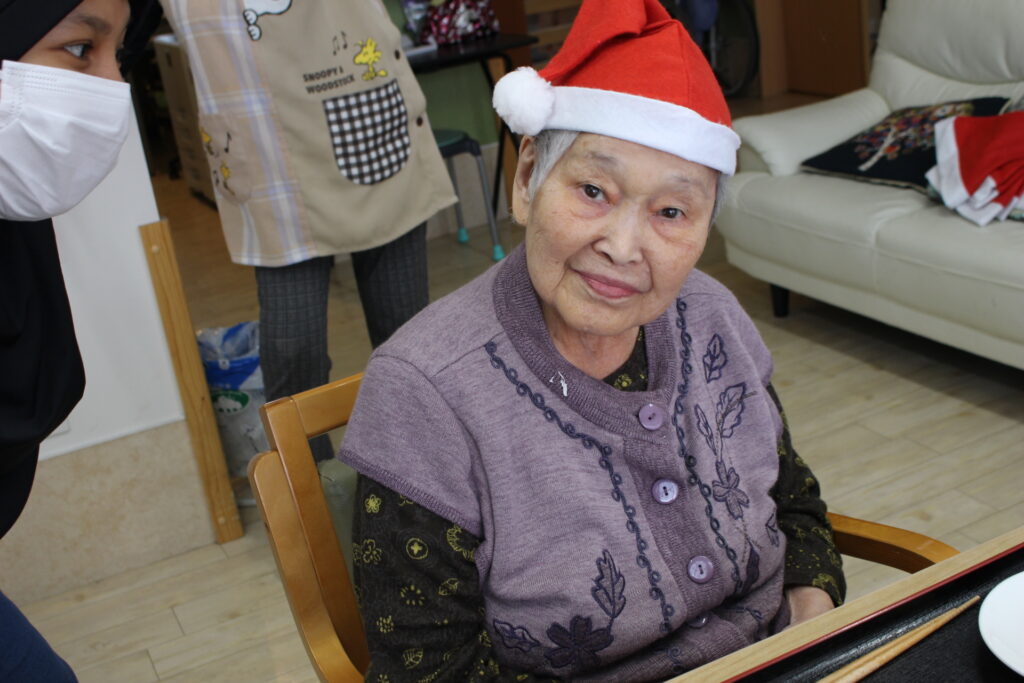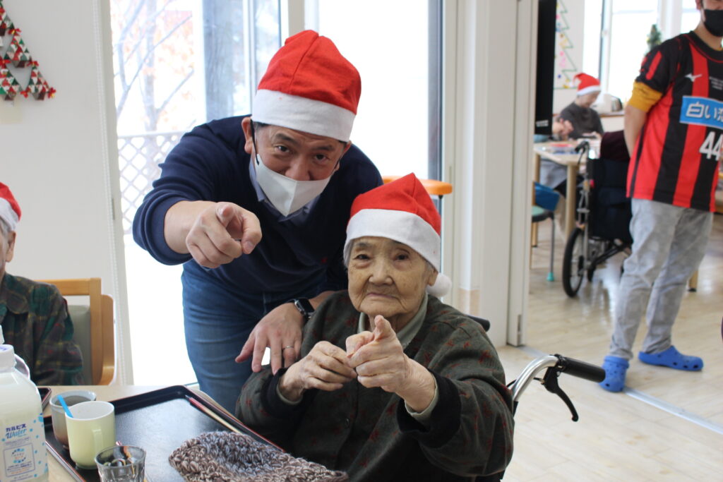 施設長もサンタの帽子をかぶり皆と楽しんでいます。
