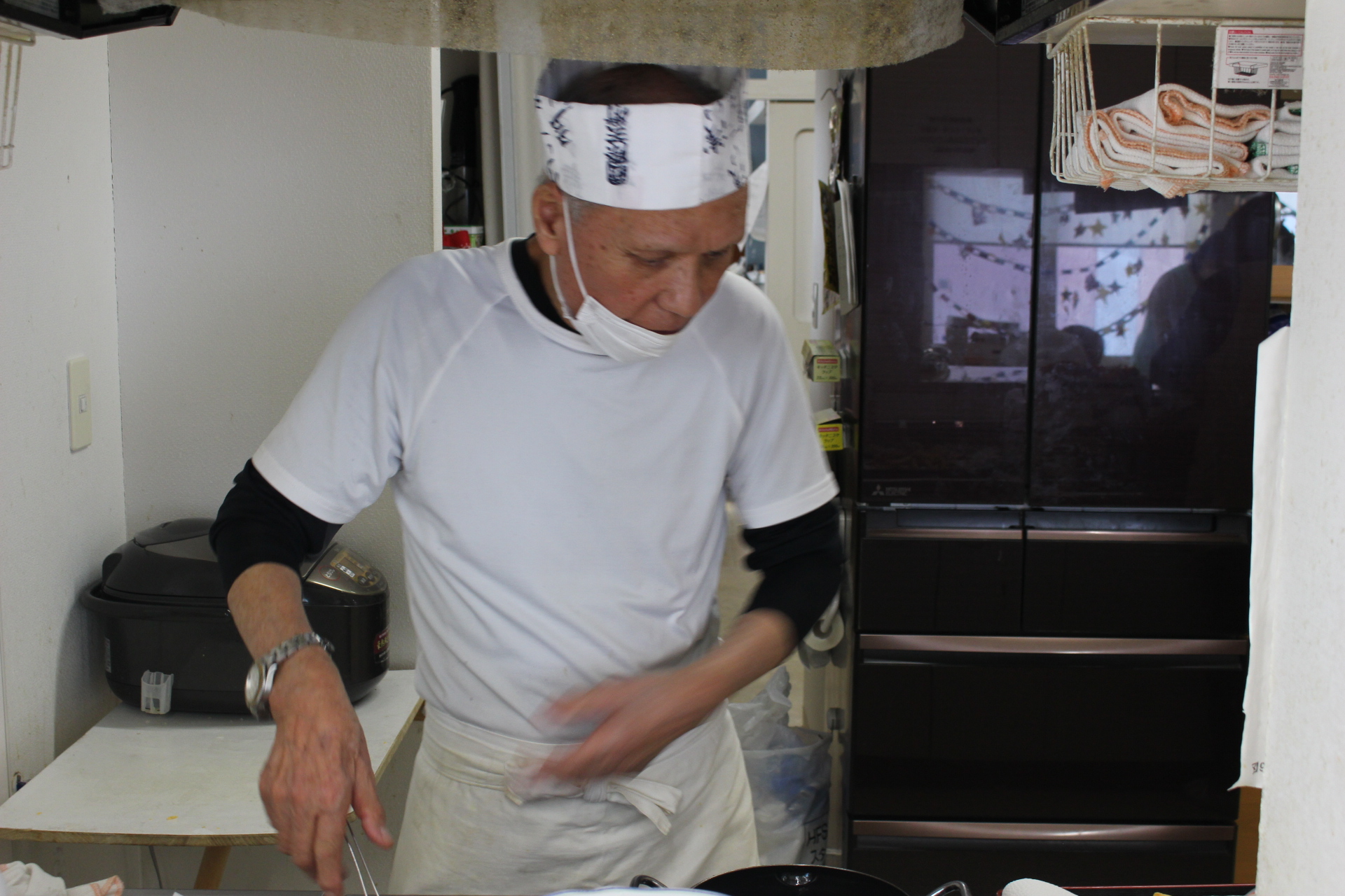 揚げ物担当、コックさん!!!今日も張り切っています。