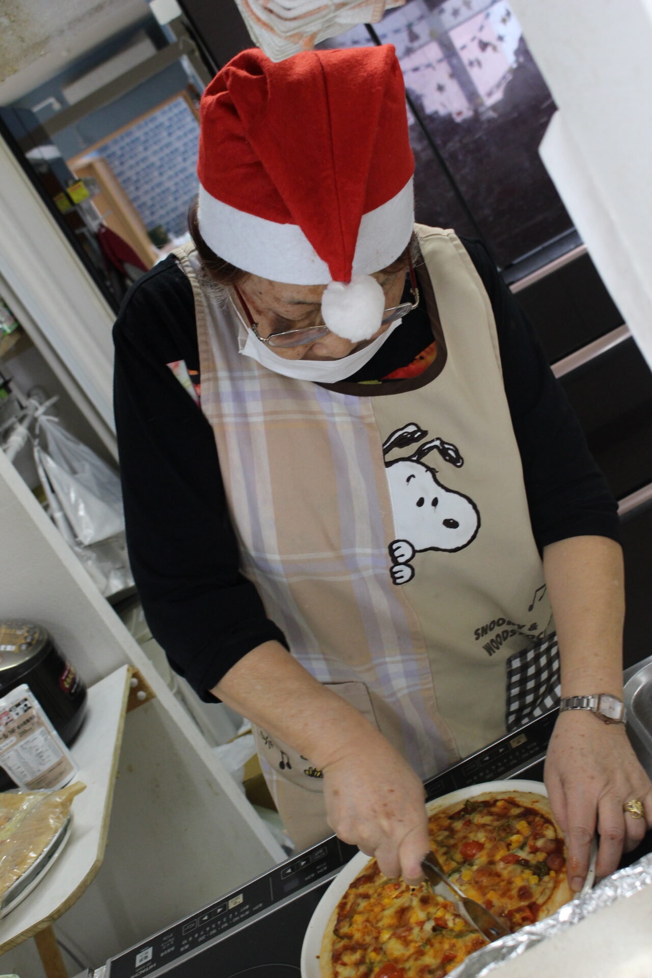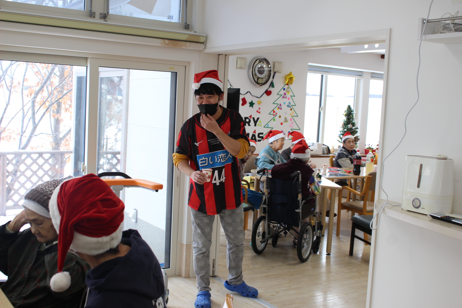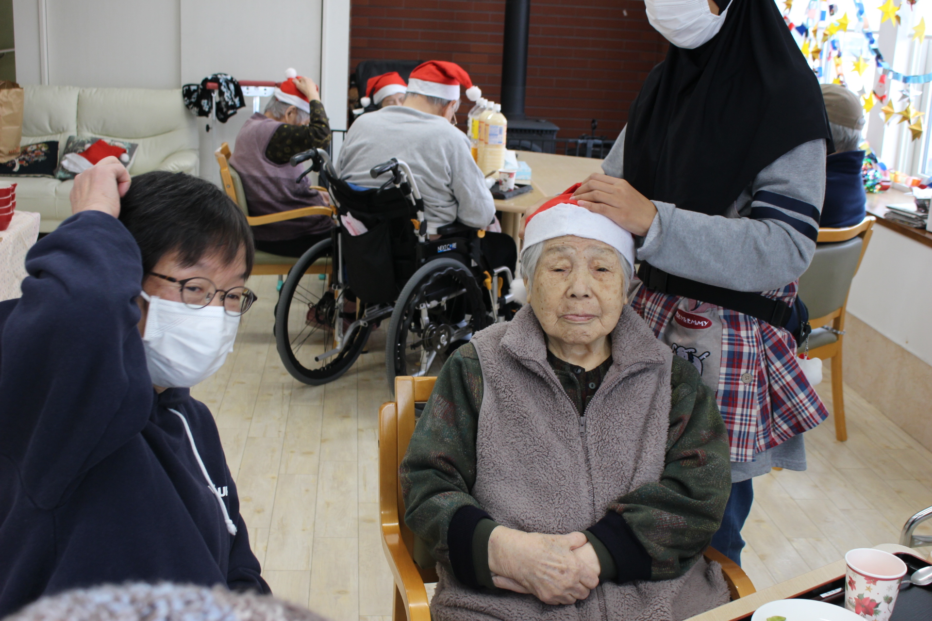 施設長もサンタの帽子をかぶり皆と楽しんでいます。