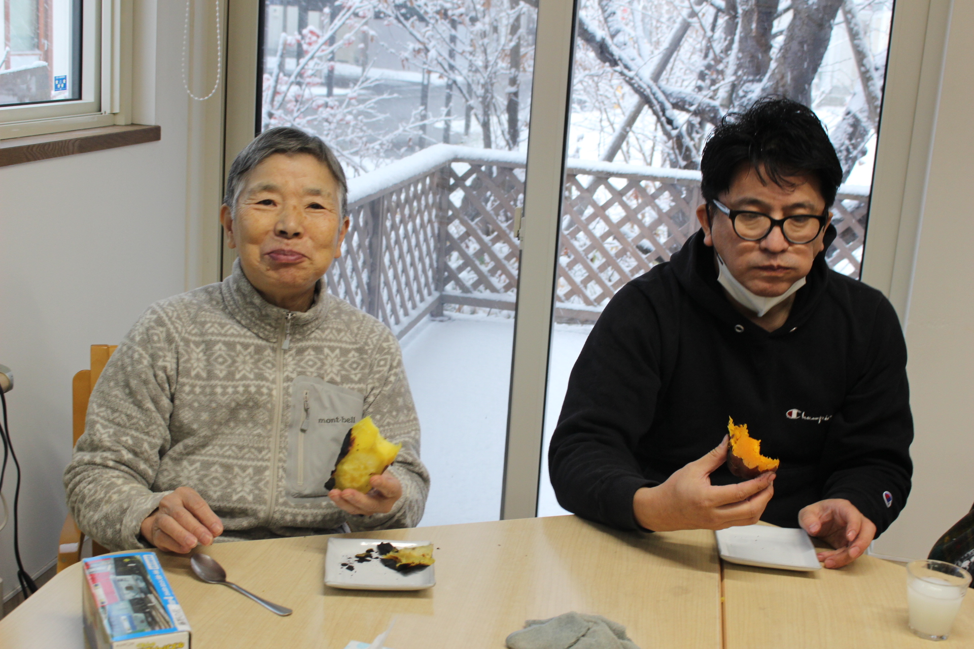 施設長と一緒に皆さんお芋を堪能されます。ふ~ふ~しながら召し上がりました。
