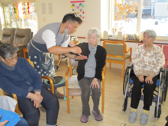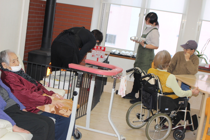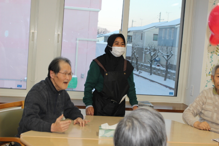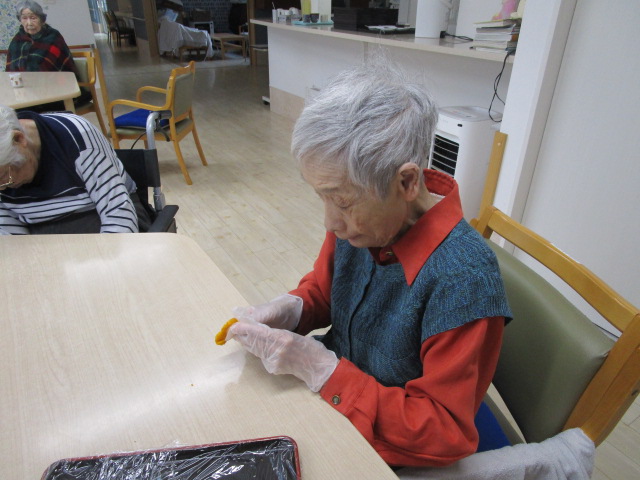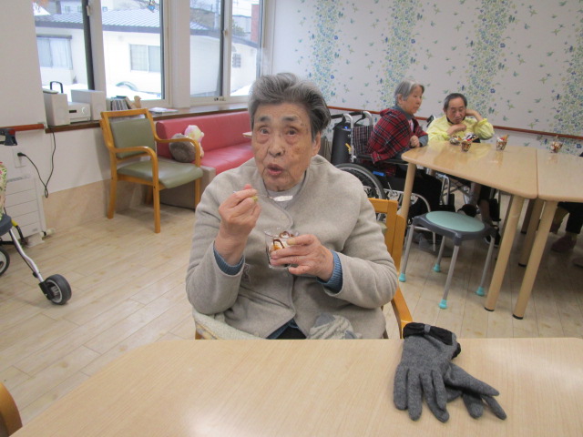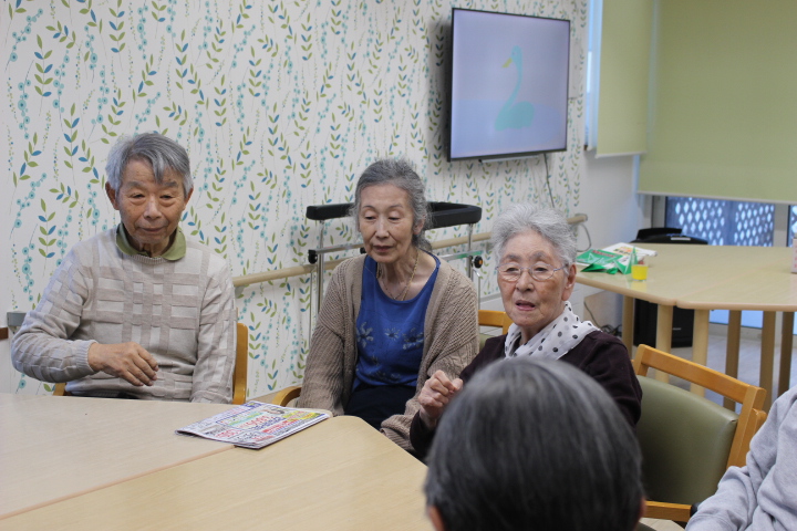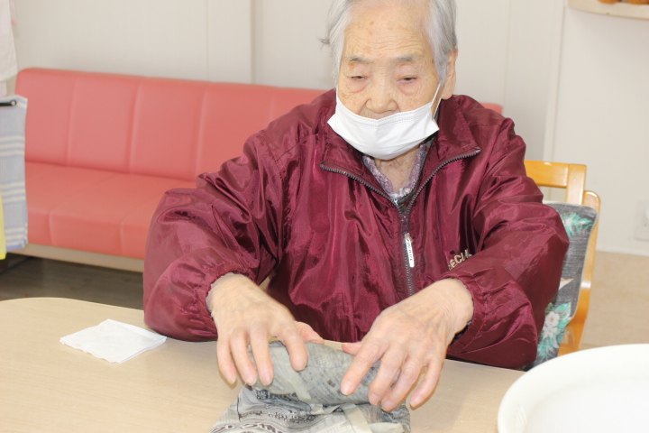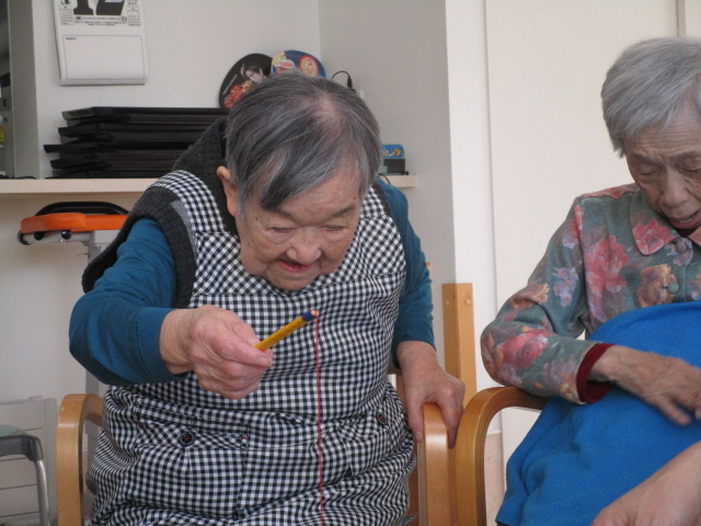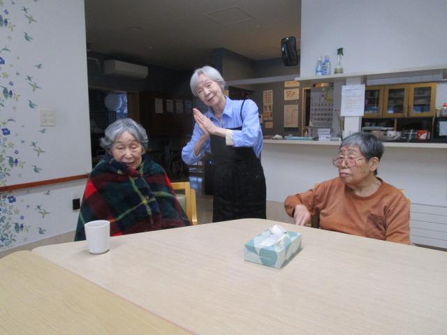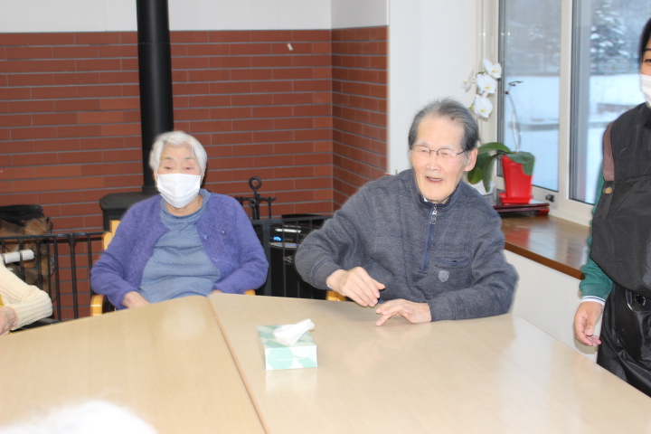 昔は子供達にも作ったものだよ。と、このような機会に皆さんのお母さん時代の子育てされていた頃のお話を伺えるのも職員の楽しみの時間でもあります。