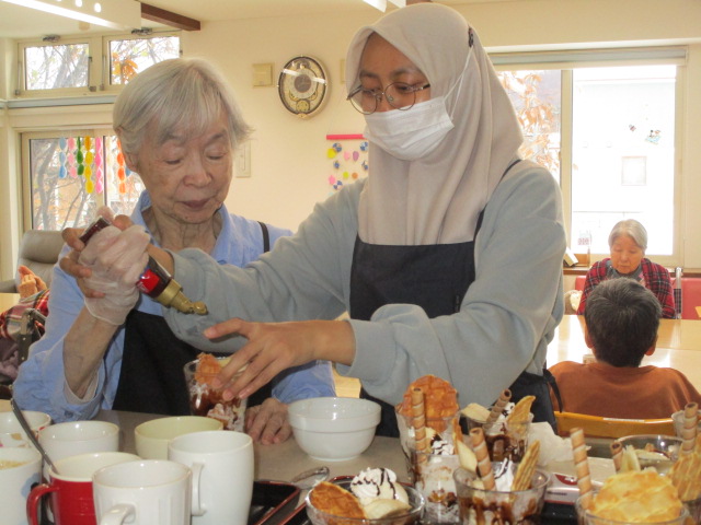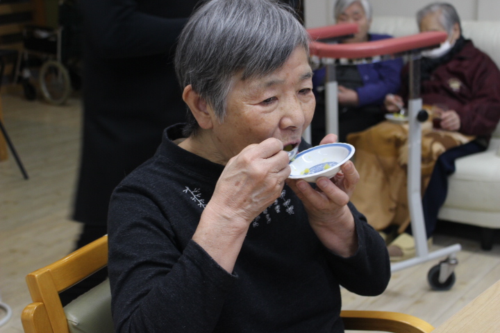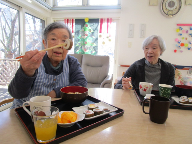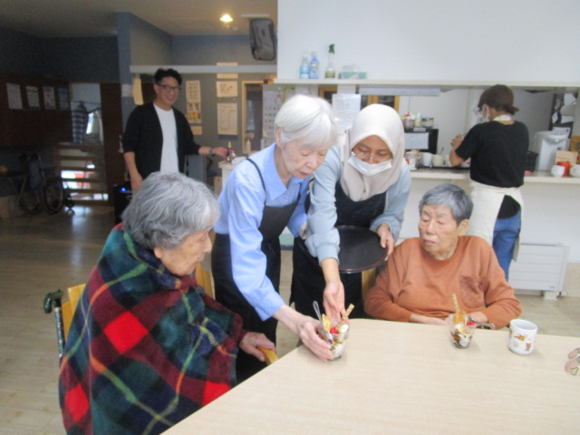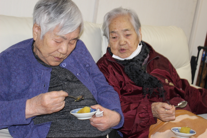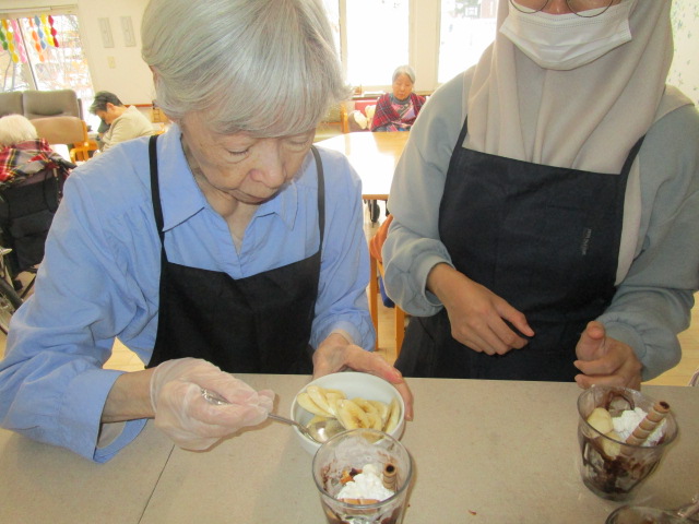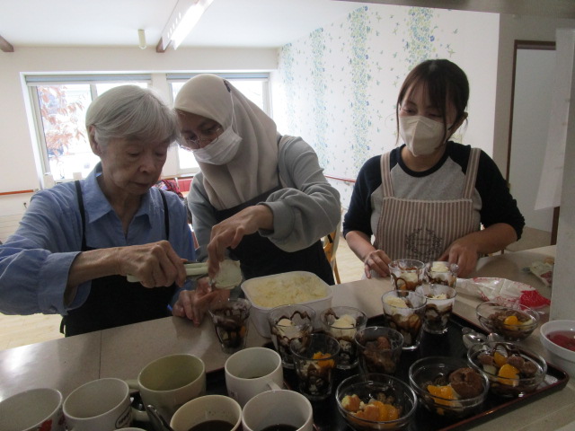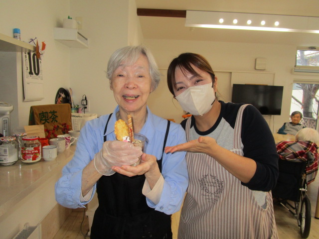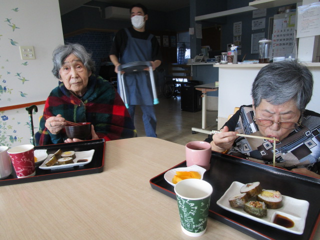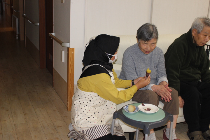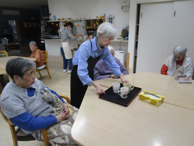 昔は子供達にも作ったものだよ。と、このような機会に皆さんのお母さん時代の子育てされていた頃のお話を伺えるのも職員の楽しみの時間でもあります。