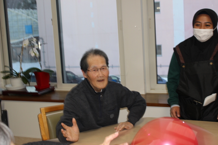 D様も施設長と力を合わせて挑戦!周りの皆様も、がんばれ~!と応援されます。