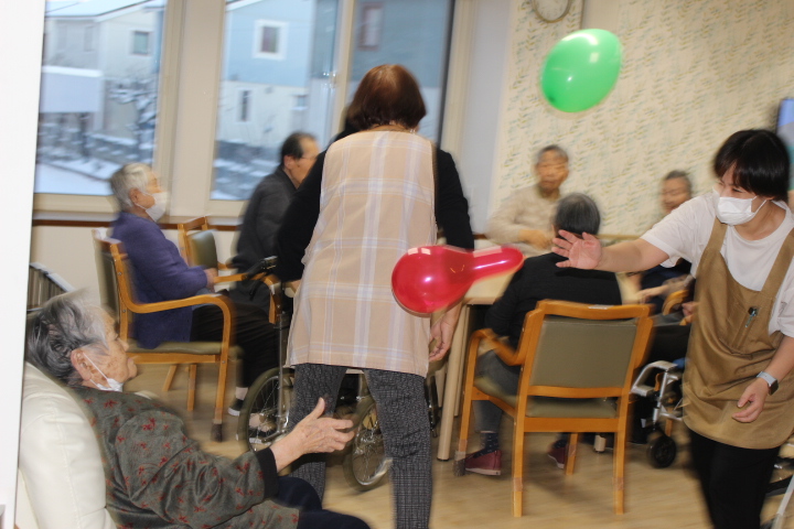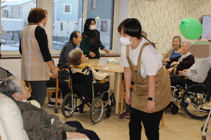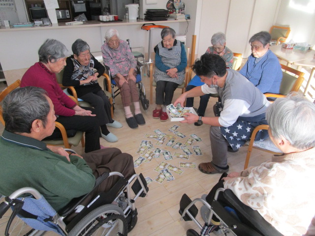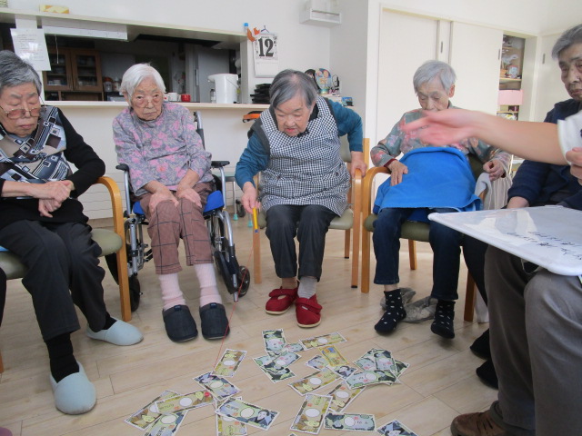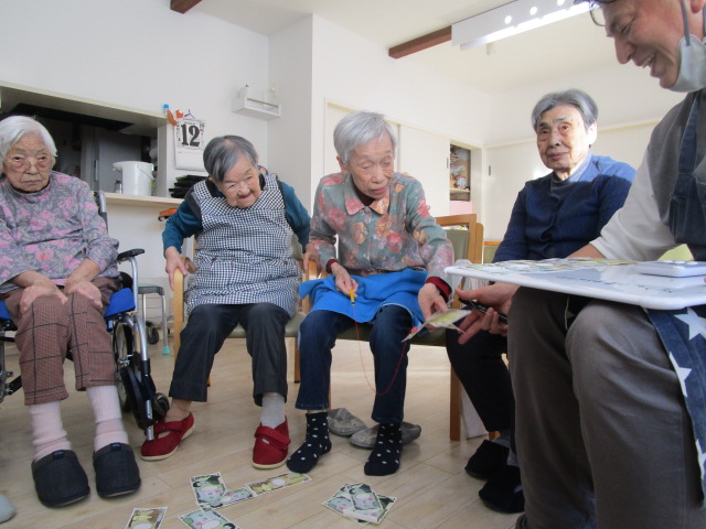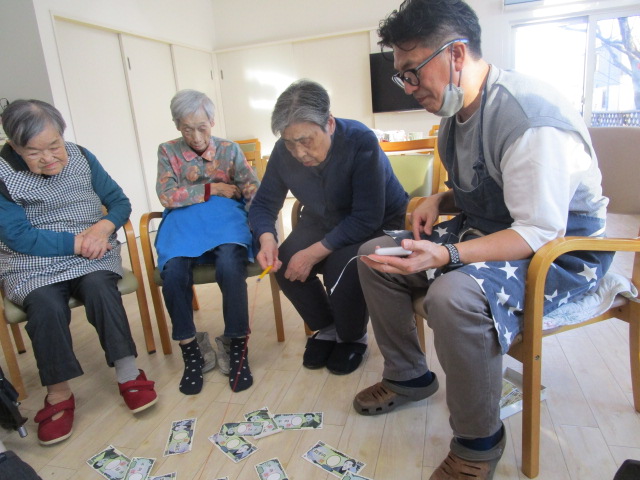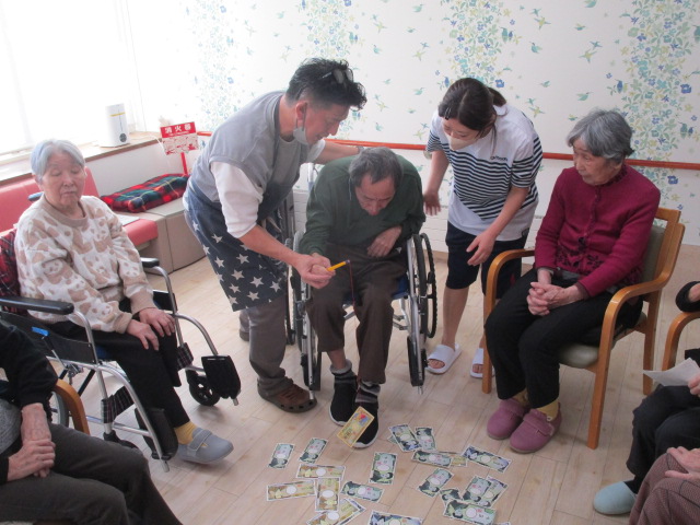 こちらは、ある日のレク。お札釣りゲームで盛り上がりました!