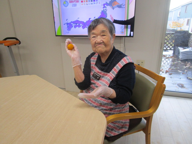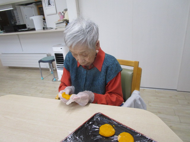 この日は、社長よりたくさん差し入れに頂いたカボチャでお団子を皆さんで作りました。