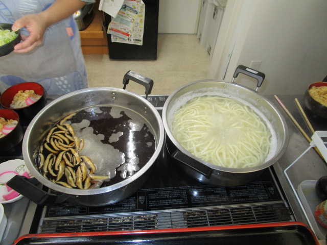 お隣の方と楽しく会話されながら、作っておられます。