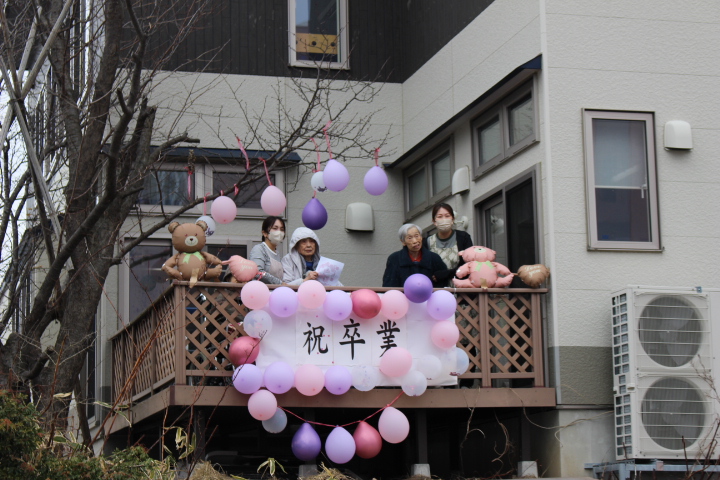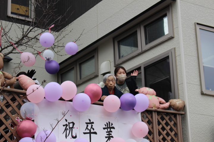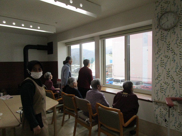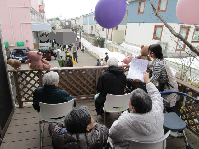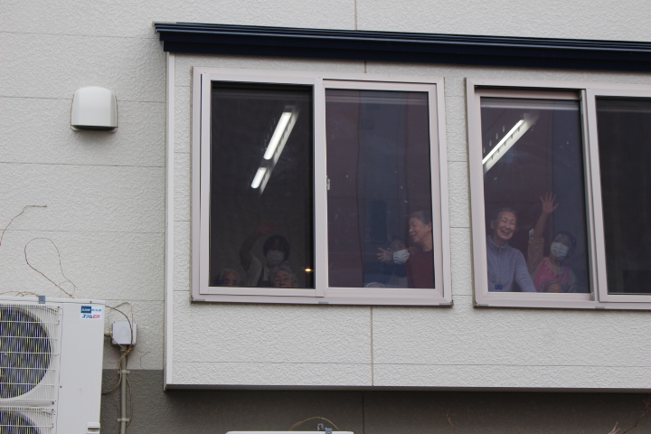 くるみユニットの皆さんは、室内から大きな声を精一杯だしお祝いされています。