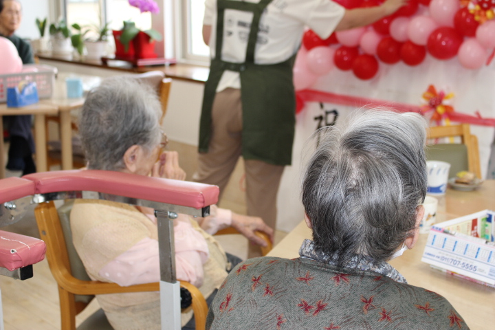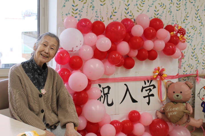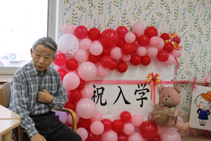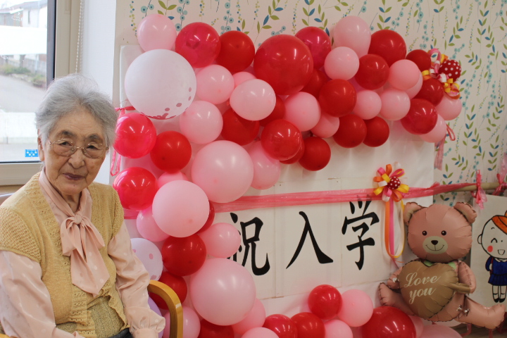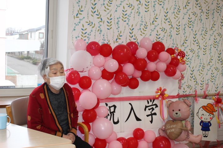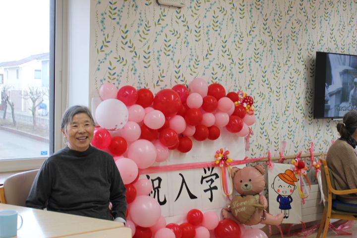 利用者様も見学中です。可愛いね~入学式か~と会話が弾みます。