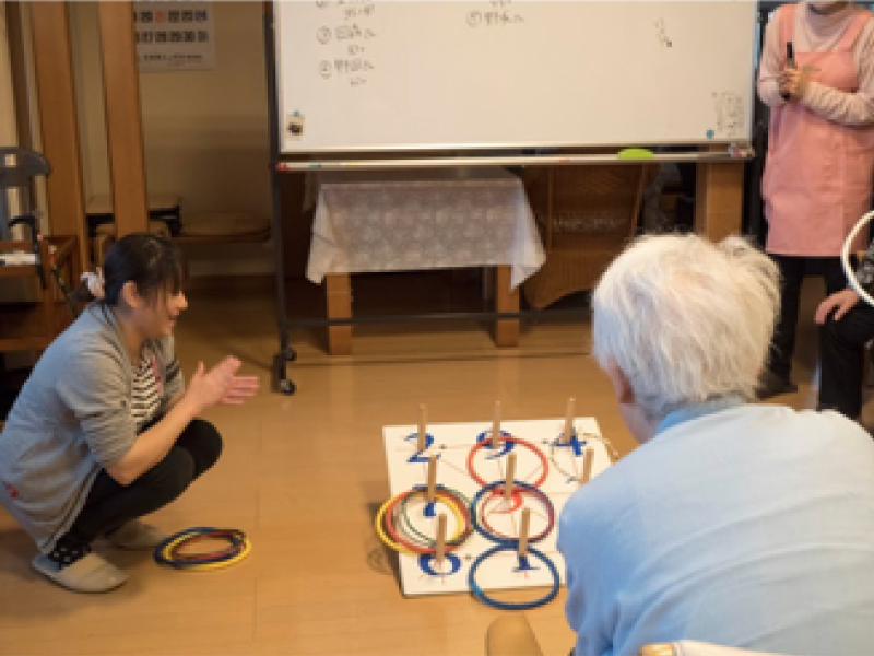 身体を動かすと自然と表情も豊になる。利用者さまのレクリエーションをサポート