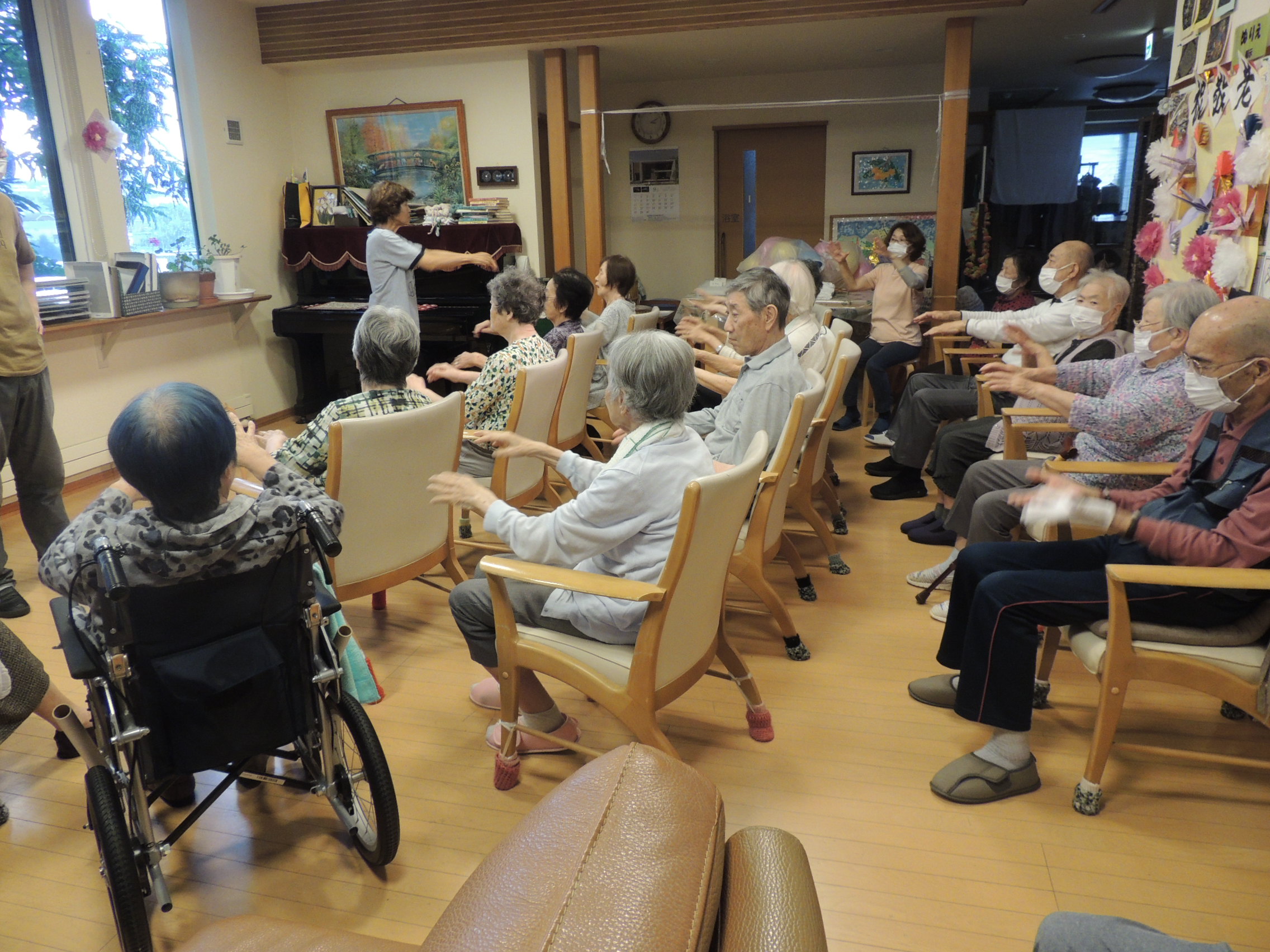 上下右左リズムよく全体運動(∩´∀`)∩