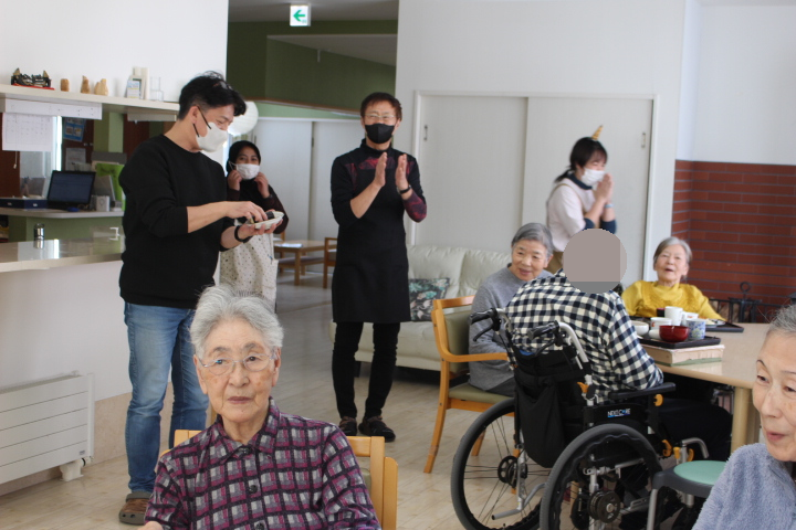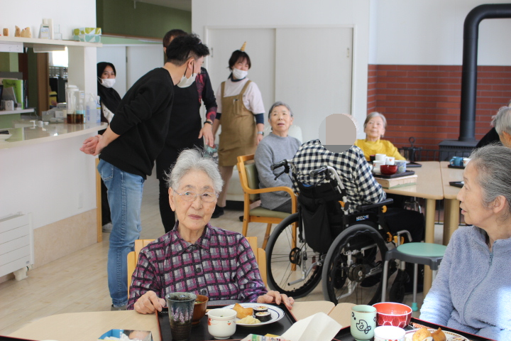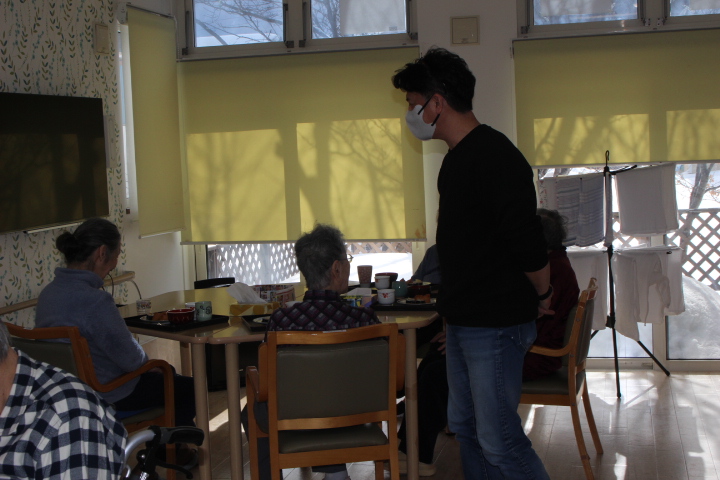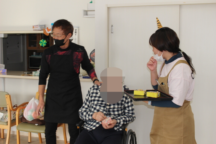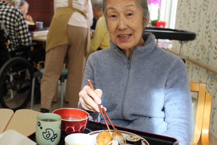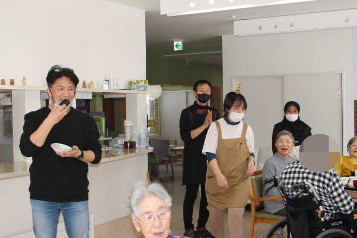 海苔巻きと、お稲荷さんも完成しお昼になったと同時に施設長が来てくれました。節分のご挨拶です。