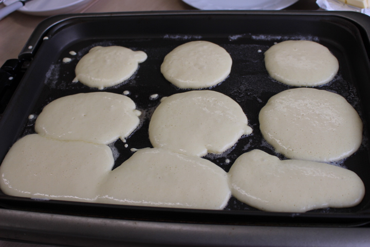 利用者様に焼いてもらいました。くっついてしまったねと大笑いです。ジュ~ッと良い音がします。ひっくり返すのにドキドキするね。