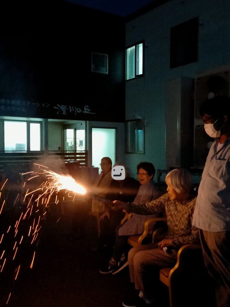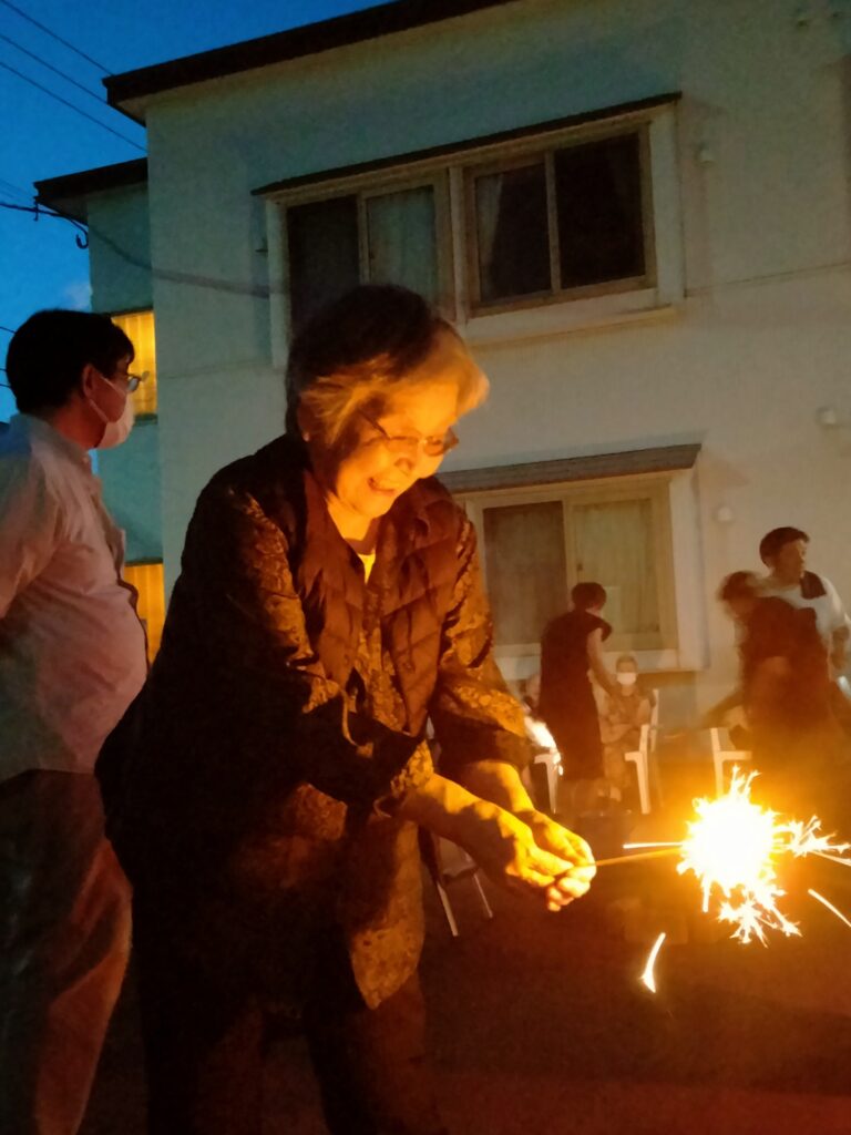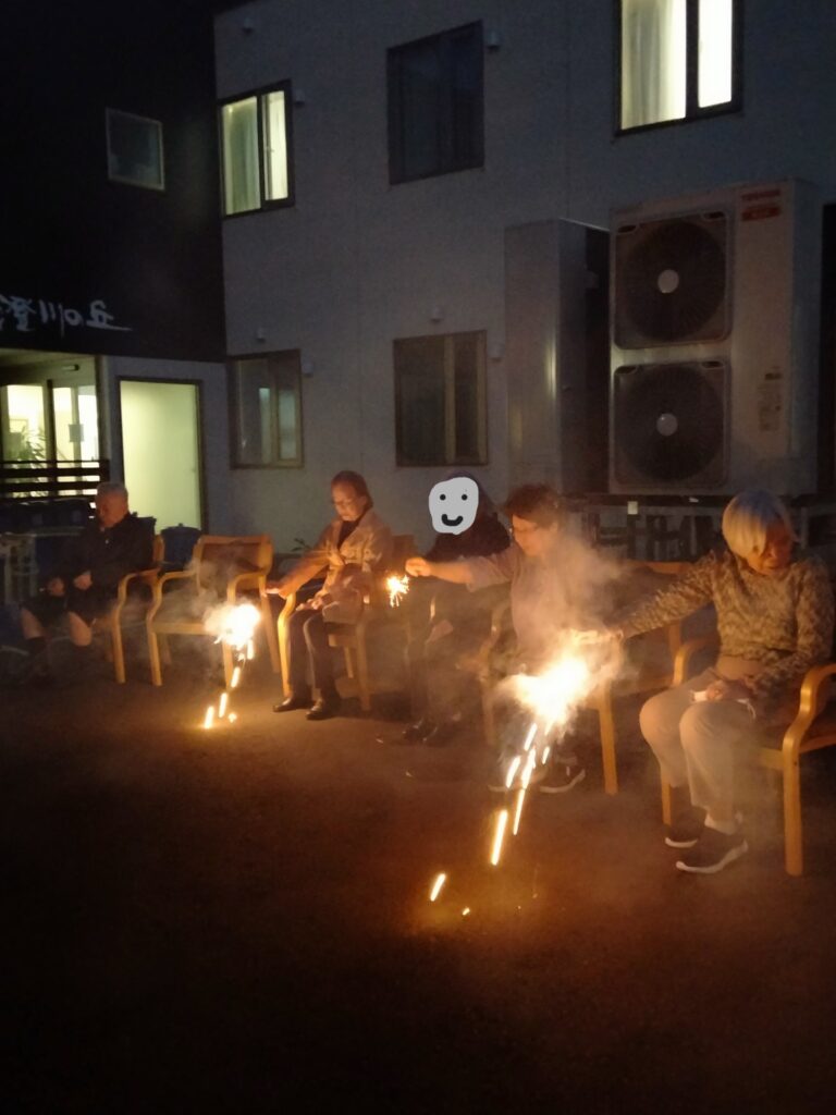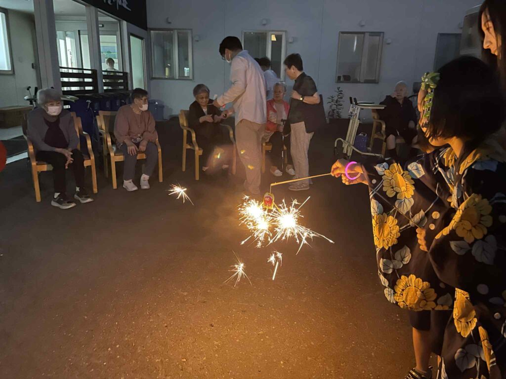 グループホームのみなさんともおしゃべりをして、手持ち花火スタート!