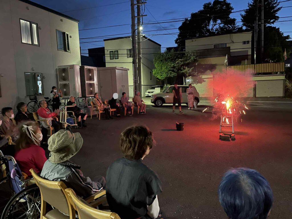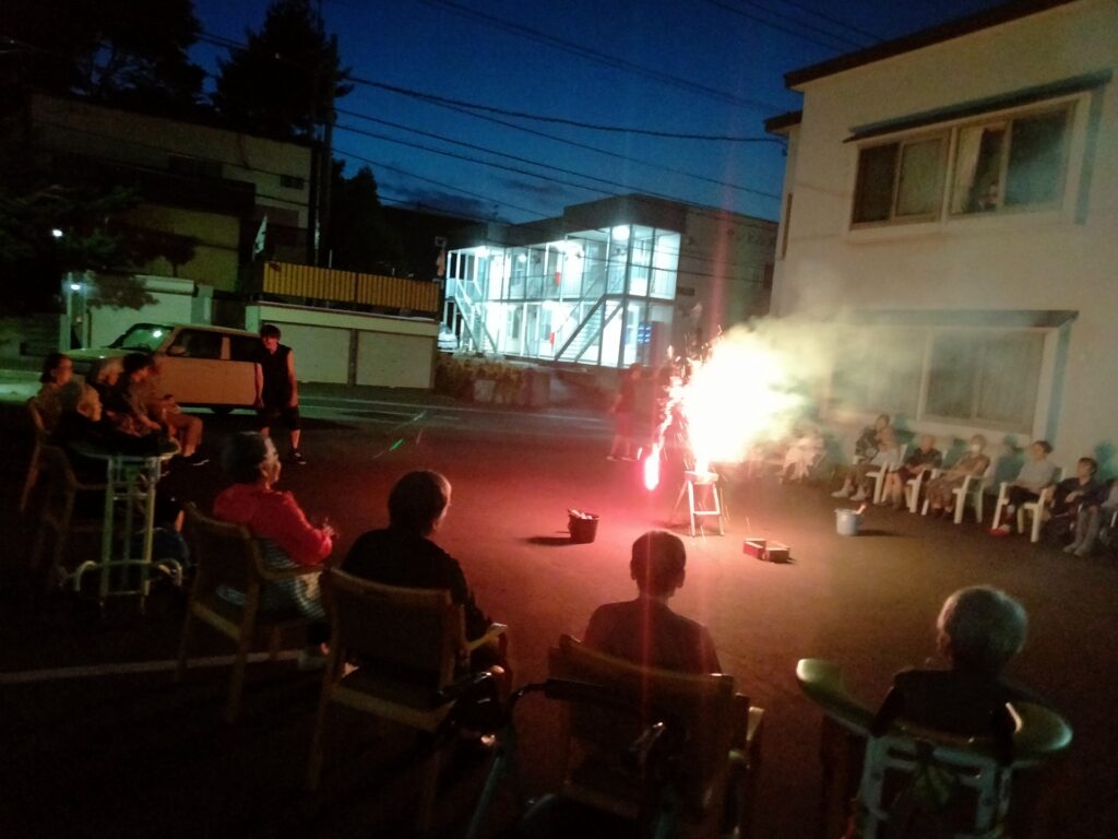 小規模多機能ステーション澄川の丘の隣にある、グループホーム澄川の丘の夏祭りの大フィナーレである、花火大会に今年もおじゃまさせていただきました。