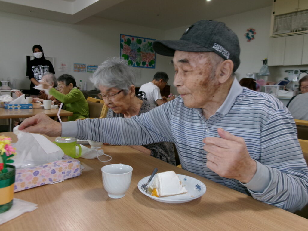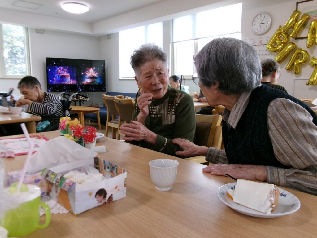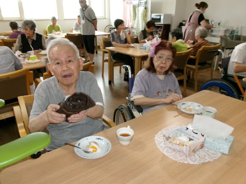 元中学校の先生だった入居者さまは、お子さんの姿に大喜び、