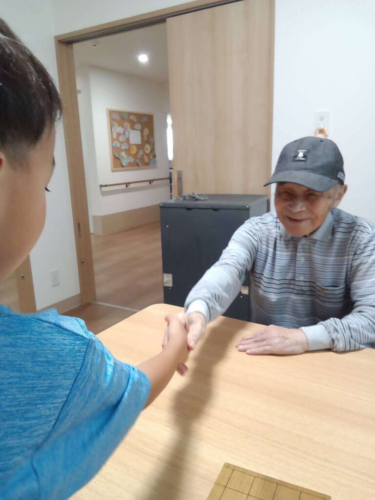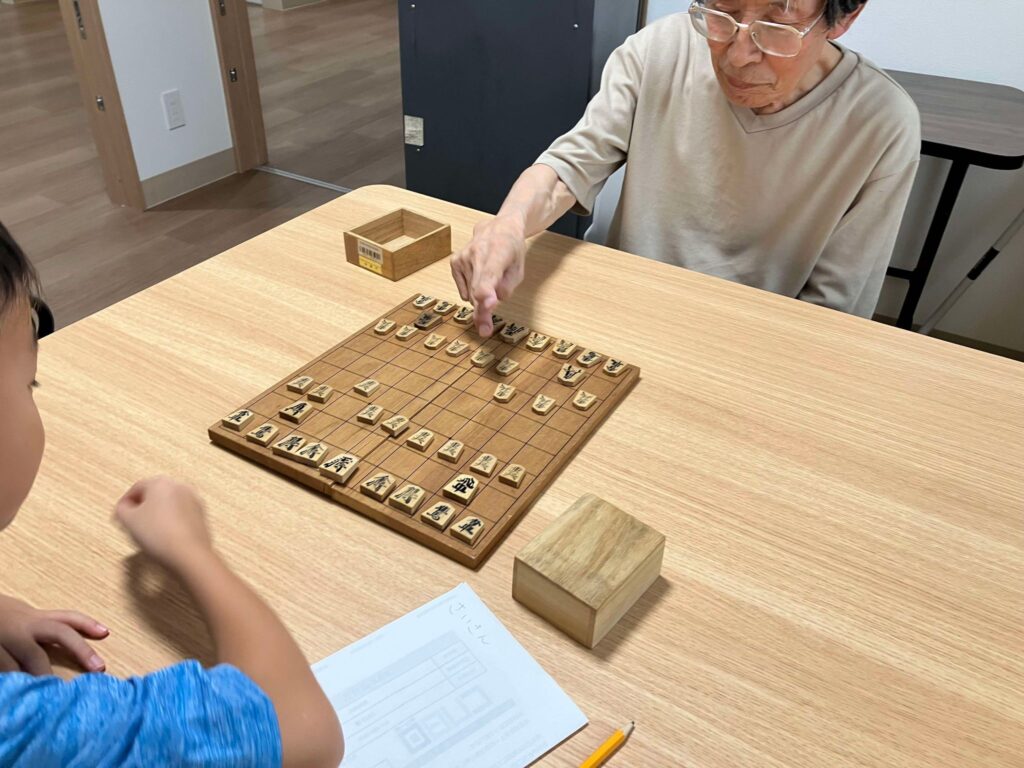 職員のお子さまが夏休みに遊びに来て、入居者さまと将棋対決!