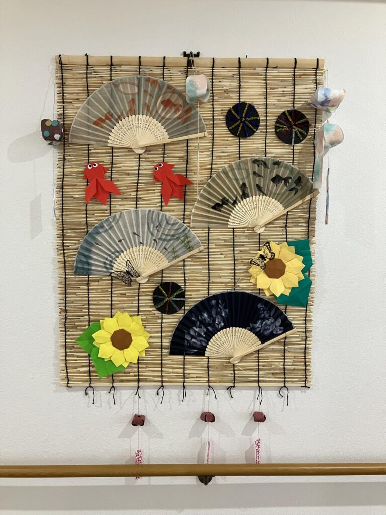 金魚、夏らしい扇子、風鈴、花火、ひまわり・・・と夏満載です。