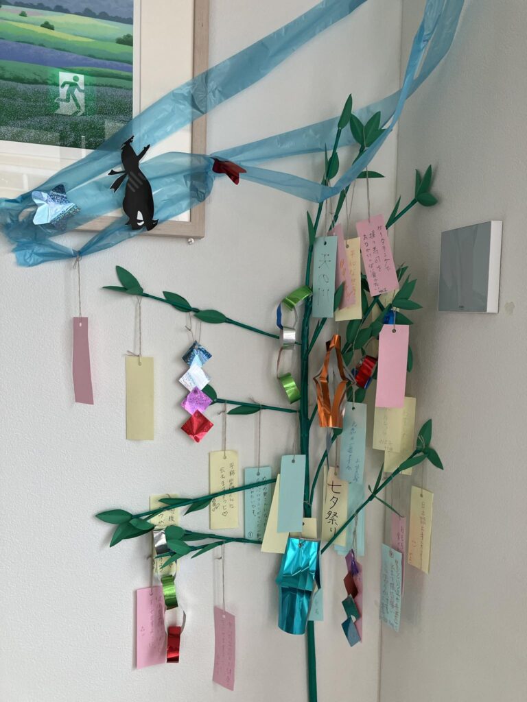 8月の頭は七夕もあったので、みなさんの願いも笹の葉とともに飾っていました。