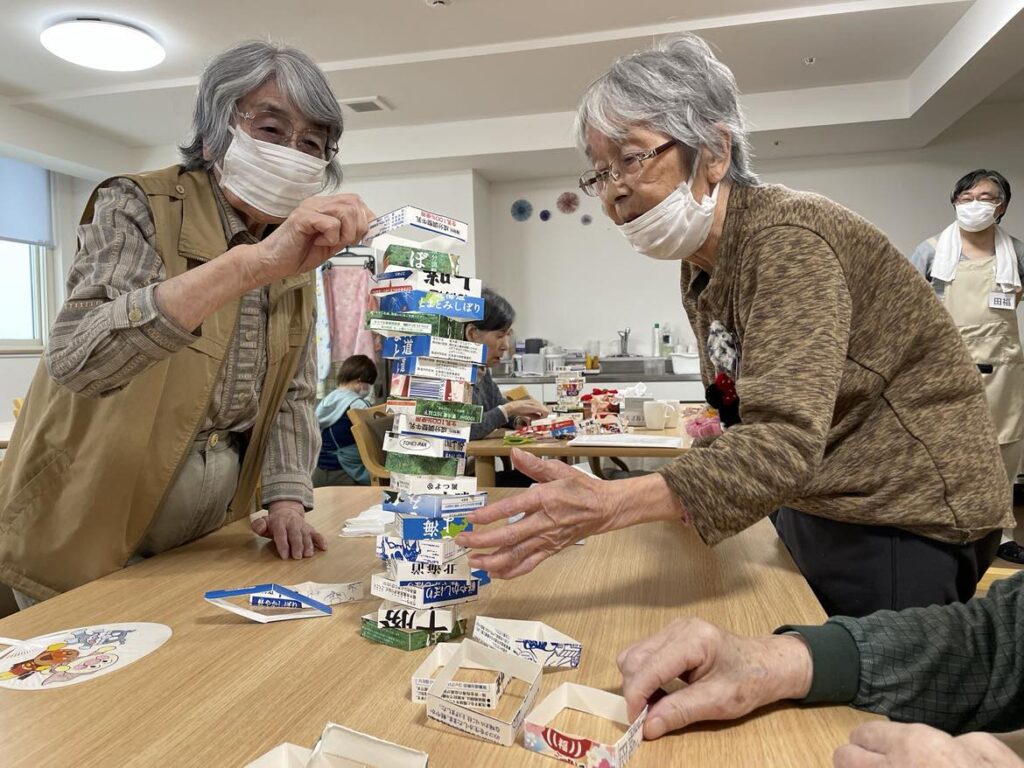 こちらの景色は?!あら!新しい塔が!!みなさん器用に指先をつかって上手!!