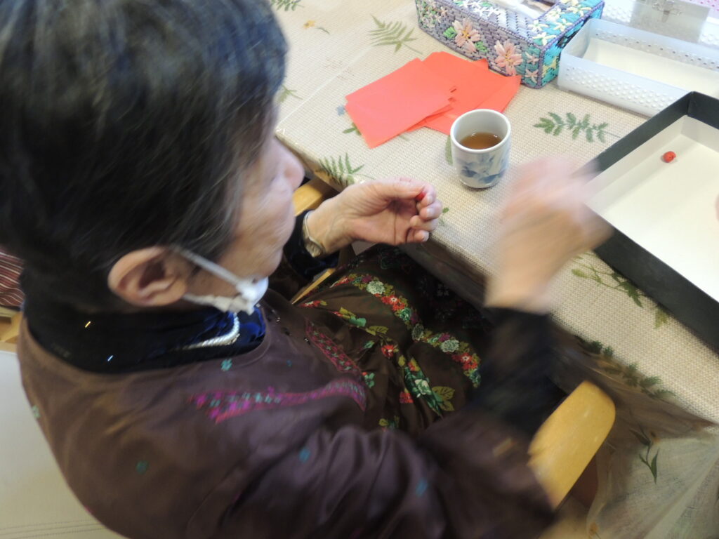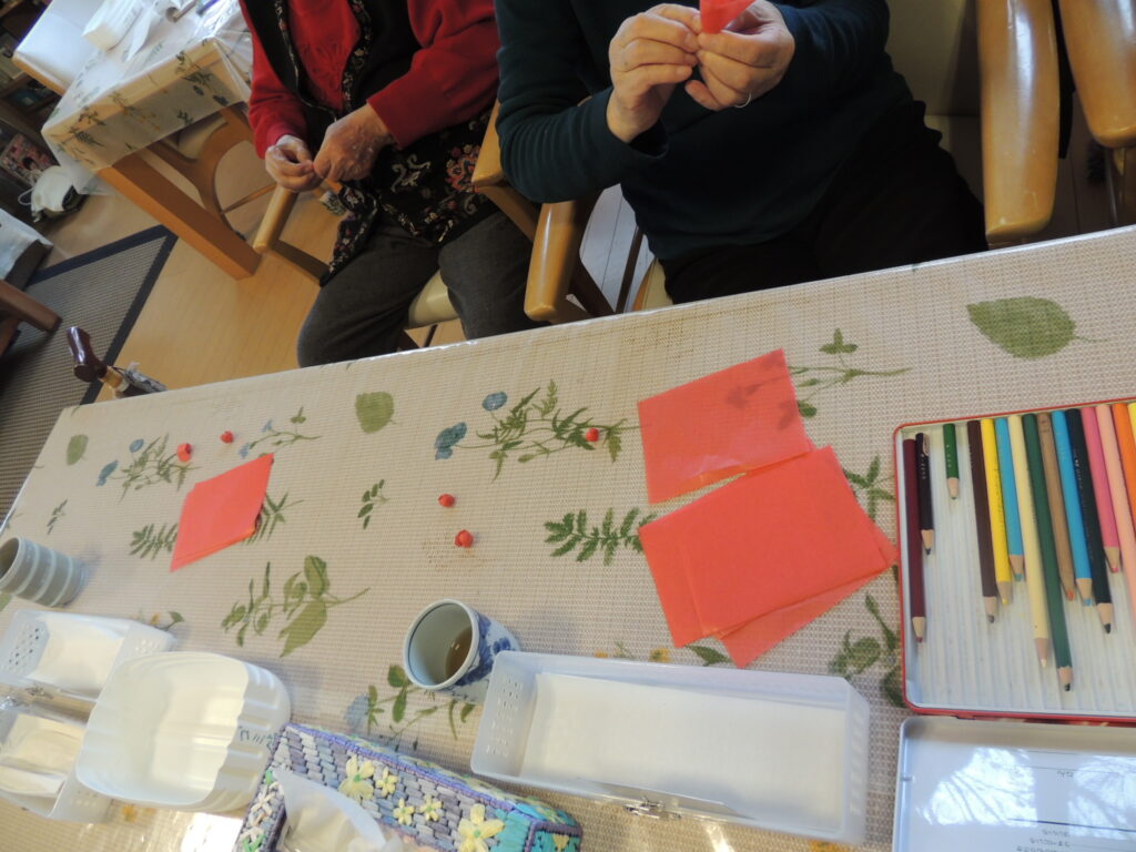 利用者様方に台紙に張って切って頂く作業を手伝っていただきました( *´艸`)